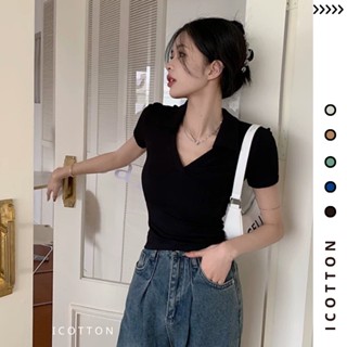 Áo thun nữ cổ vuông vạt bầu <3 Icotton <3 Áo phông ôm body cộc tay A52