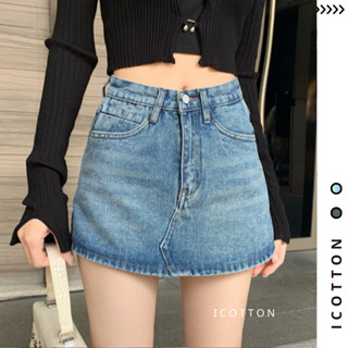 Chân Váy Jean Chữ A Y2K BASIC ICOTTON Zip Bò Cạp Cao Tôn Dáng Có lót quần trong