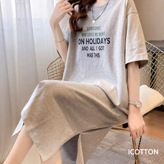 Áo thun nữ ICOTTON áo phông tay lỡ phom rộng xẻ tà 100%cotton kiểu dáng mặc hè mát