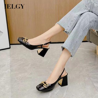 IELGY Xăng đan Cao Gót Mũi Vuông Phong Cách retro Pháp