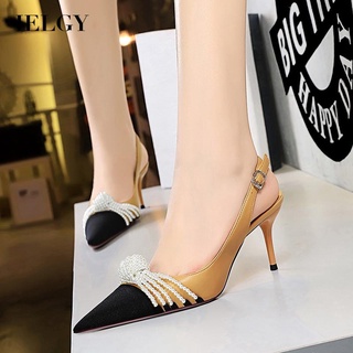 Giày cao gót IELGY mũi nhọn đính nơ phối hạt ngọc trai màu sắc tùy chọn cổ điển thời trang cho nữ