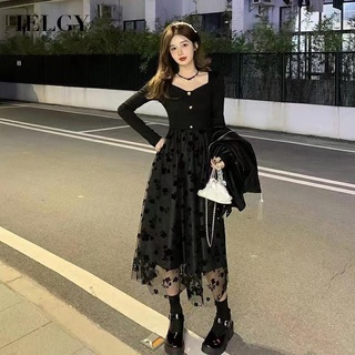 Đầm IELGY tay dài màu đen ôm dáng vừa vặn xinh xắn thời trang dành cho nữ