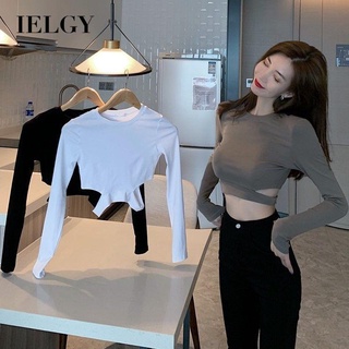 Áo thun IELGY ngắn dáng ôm thiết kế khoét lỗ thời trang cho nữ