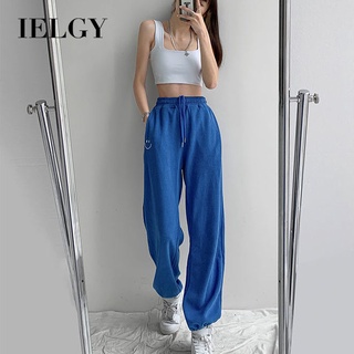Quần thể thao Ielgy lưng cao ống rộng màu xanh dương phối dây rút phong cách thời trang mùa hè cho nữ