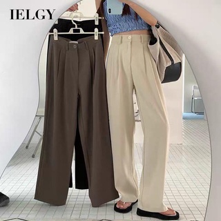 IELGY Quần tây ống đứng lưng cao màu trơn thời trang công sở cho nữ