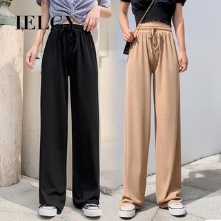 Quần dài IELGY lưng cao ống rộng vải lụa lạnh mỏng thời trang cho nữ