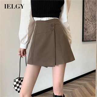IELGY IELGY Chân Váy Da PU Dáng Chữ A Lưng Cao Màu Đen Thời Trang Cho Nữ