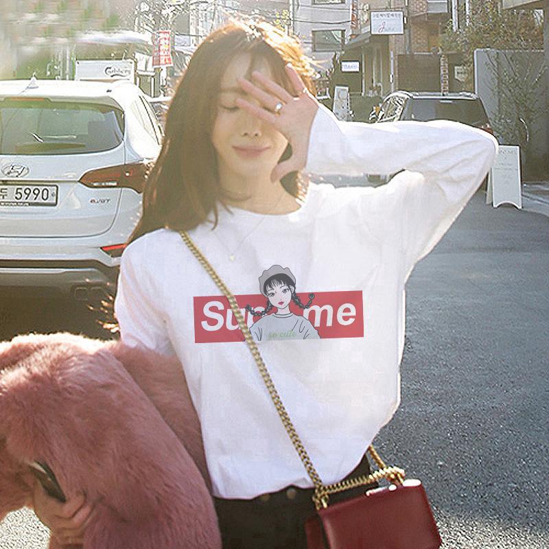 IELGY Áo Thun Tay Dài Dáng Rộng Phong Cách Hàn Quốc Thời Trang Cho Nữ