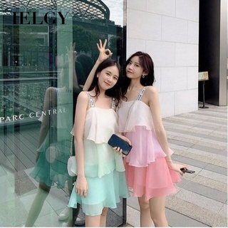 Đầm xếp tầng hai dây IELGY màu gradient phong cách Hàn Quốc thời trang mùa hè cho nữ