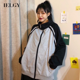 Áo khoác bóng chày thể thao IELGY dáng rộng phối màu tương phản thời trang dành cho nữ