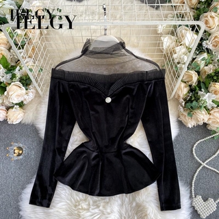 Áo kiểu IELGY chất liệu vải nhung phong cách thời trang retro Pháp dành cho phái đẹp