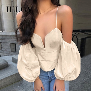 IELGY Áo crop top Ôm Dáng Tay Phồng Có Dây Cột Gợi Cảm