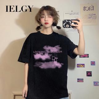 Áo thun IELGY tay ngắn dáng dài in họa tiết phong cách Hàn Quốc thời trang thoải mái cho nữ