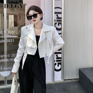 Áo khoác IELGY dáng ngắn tay dài màu trắng có khóa kéo dễ phối đồ thời trang trẻ trung dành cho nữ