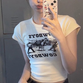 IELGY Áo thun IELGY tay ngắn dáng rộng in chữ thời trang cho nữ
