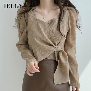 Áo kiểu IELGY cổ vuông tay dài phong cách Hàn Quốc dành cho nữ
