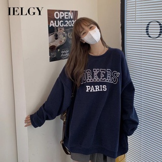 IELGY Áo hoodie Nhung Tay Dài Dáng Rộng Phong Cách Hàn Quốc Dành Cho Nữ
