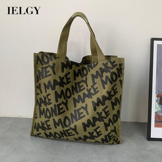 Túi xách đeo vai vải bạt cỡ lớn in chữ kiểu dáng thời trang đơn giản cho nữ IELGY