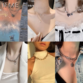 Vòng cổ IF ME Y2K mạ bạc mặt tùy chọn thời trang cho nữ