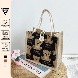 Túi tote nữ hình gấu dễ thương, túi canvas cầm tay, đeo vai thời trang Hàn Quốc