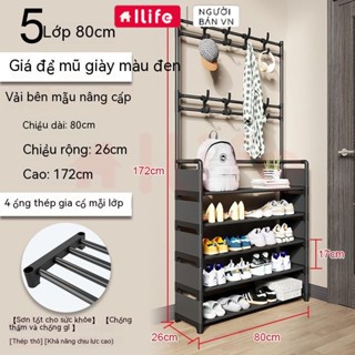 (80cm)Giá Kệ để giày dép đa năng 4 tầng 5 tầng thông minh có móc treo quần áo và vật dụng khác