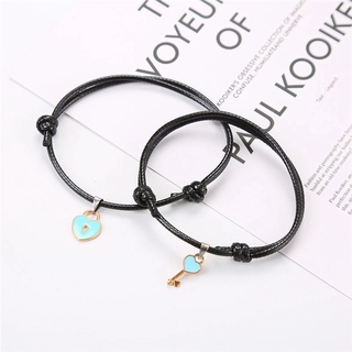 Set 2 Vòng Tay Bện Dây Mặt Hình Ổ Khóa / Trái Tim Thời Trang Cho Cặp Đôi