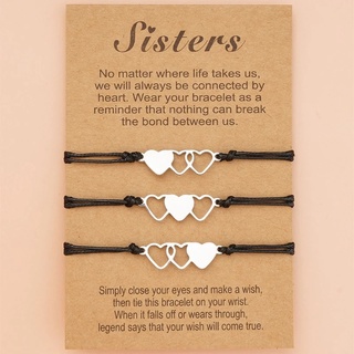 Set 3 Vòng Tay Bện Dây Gắn Mặt Kim Loại Hình Trái Tim Thời Trang Cho Nữ