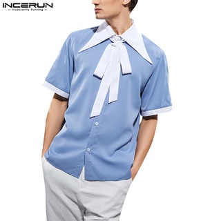 Áo sơ mi INCERUN ngắn tay phối màu retro cho nam