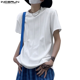 Áo thun INCERUN dệt kim ngắn tay cổ tròn màu trơn thời trang hè cho nam