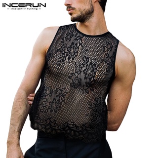 INCERUN Áo Ba Lỗ Cổ Tròn Phối Ren Thời Trang Cho Nam