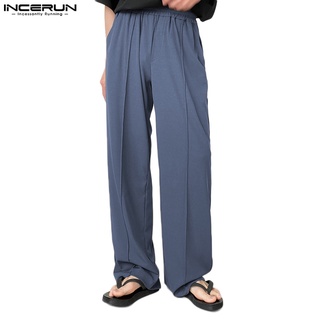 Quần dài INCERUN ống rộng suông thẳng màu trơn thời trang phong cách Hàn Quốc cho nam
