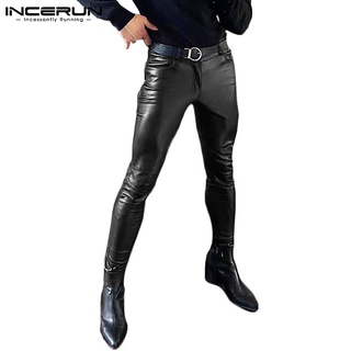 Quần INCERUN dạng dài bằng da màu đen kiểu dáng ôm sát thời trang thường ngày sành điệu cho nam