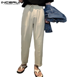INCERUN Quần Dài Nam Lưng Cao Ống Rộng Màu Trơn Thời Trang