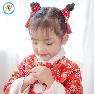 Cặp kẹp tóc IQ ANGEL đính nơ trang trí tua rua sợi tóc bện phong cách Trung Hoa cổ điển thời trang năm mới cho trẻ em