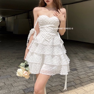 [hàng QC] Đầm trắng trễ vai phối nơ ngực chất xô thêu có lót toàn thân chân váy đuôi cá