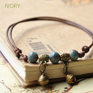 Vòng đeo cổ chân kiểu dây bện phối hạt gốm sứ cổ điển sang trọng dành cho nữ