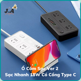 (VER 2) Ổ ĐIỆN ĐA NĂNG V2 18W, KẾT HỢP SẠC KHÔNG DÂY, CÓ CỔNG SẠC NHANH TYPE C, USB, CÔNG SUẤT 2500W, CHỐNG CHÁY NỔ