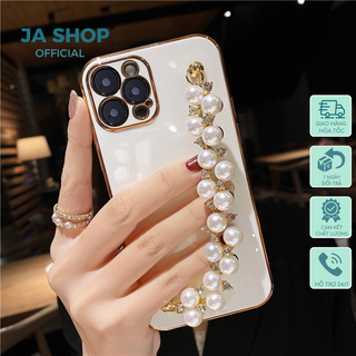 Ốp Lưng Sang Trọng Có Dây Ngọc Trai Cầm Tay Chống Rơi Cho iPhone 7 plus tới 14 Promax (JA Shop)