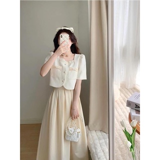 Aó Blazer Nữ Tay Dài JARI-CLOTHES Croptop Kèm Váy Hai Dây Sang Chảnh Tiểu Thư