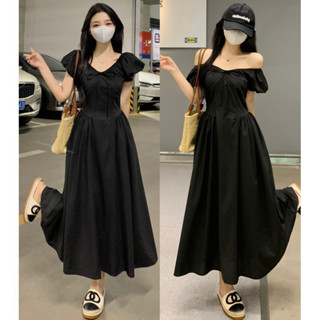 Đầm Midi Đen Dài Cổ V ( Có thể mặc trễ vai ) Đi Chơi Xoè