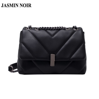 Túi Đeo JASMIN NOIR Vai Da Pu Màu Trơn Phối Dây Xích Thiết Kế Đơn Giản Cho Nữ