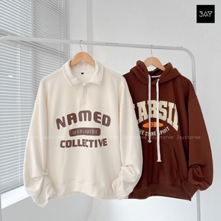 Áo sweater cổ polo NAMED màu KEM form rộng/Nam nữ unisex Áo Sweater có cổ Jaystoree