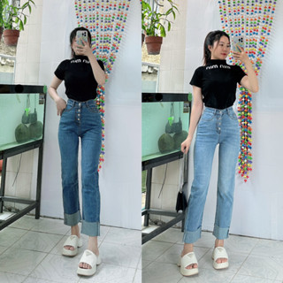 Quần jean ống đứng lật lai lưng cao siêu co dãn - Mẫu chính chủ cao 1m55