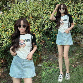 Chân váy jean chữ A kèm quần, chân váy bò cạp cao rách đẹp