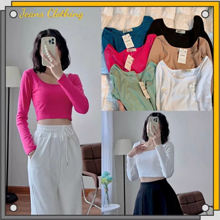 ÁO THUN NỮ TAY DÀI CỔ VUÔNG NHIỀU MÀU - ÁO CROPTOP ÔM DBODY - HÀNG CHUẨN SHOP