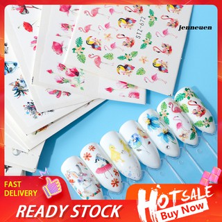 [Hàng mới về] Bộ 15 tờ miếng dán trang trí móng tay nghệ thuật chuyển nước họa tiết hoa và chim hồng hạc xinh xắn