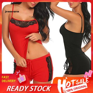 Set Đồ Ngủ Áo Hai Dây + Quần Ngắn Phối Ren Quyến Rũ Cho Nữ