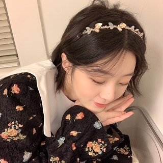 Băng Đô Cài Tóc Dệt Kim Viền Rộng Đính Ngọc Trai Giả Kiểu Hàn Quốc Mới