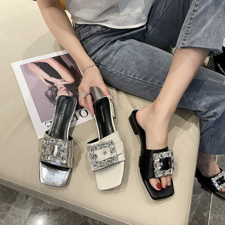 Dép Sandal Đế Thấp Quai Đính Đá Thời Trang Dành Cho Nữ