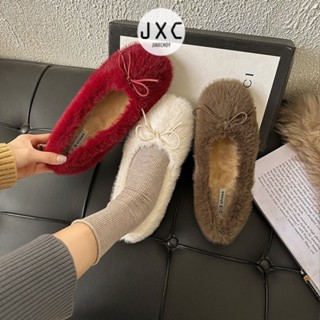 JINxCHOY Giày Búp Bê Mũi Tròn Lót Lông Cừu Màu Trơn Thoải Mái Thời Trang
